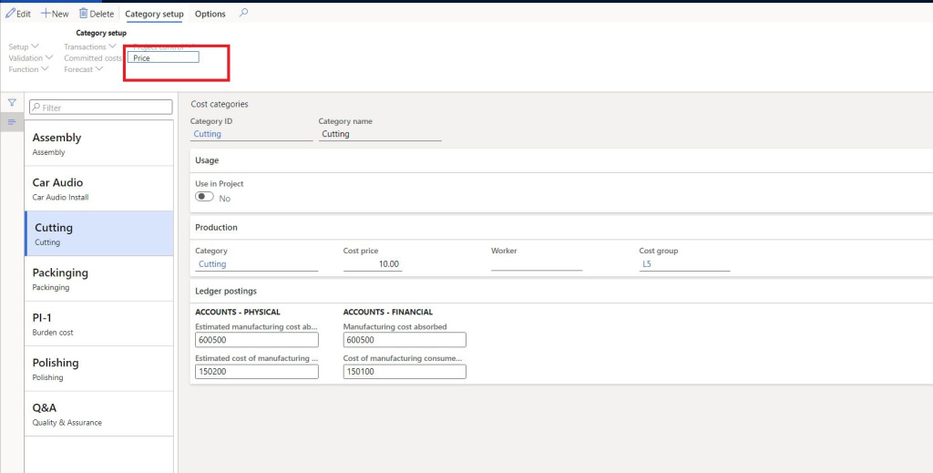 Once we defined cost categories and mapped with cost group, now we can define price for each cost category, now this can be defined organization level or site specific.