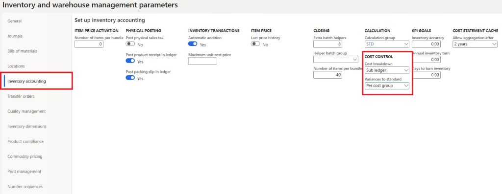 To analyse or configure different cost component, we need to enable the cost control in inventory parameters.