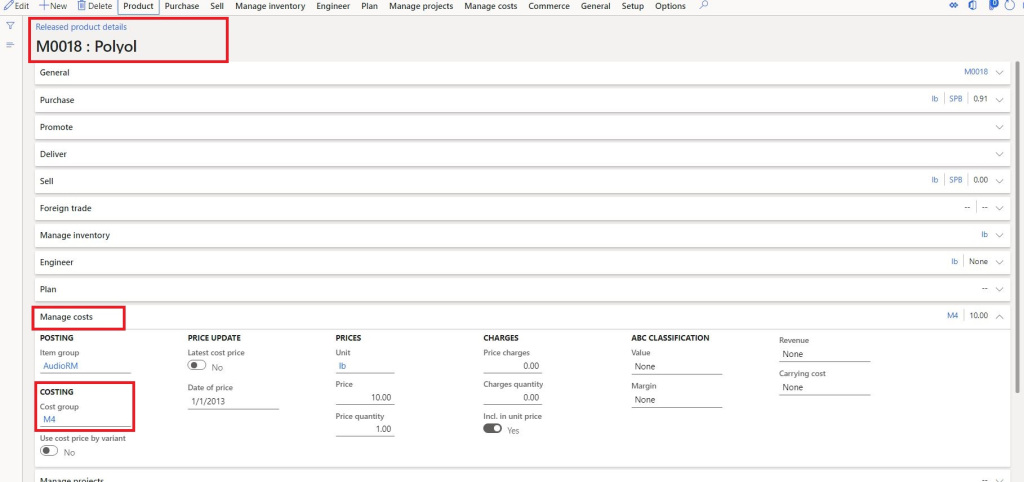 Released Products > Open and Edit Product > Manage Cost Fast tab