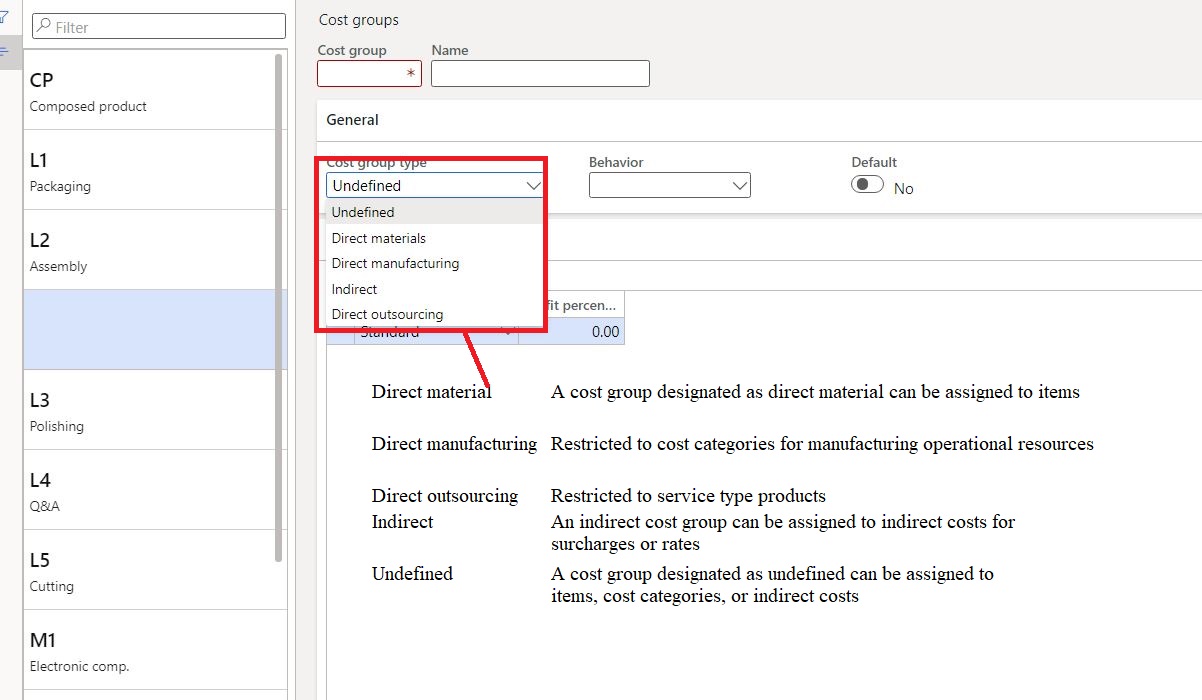Cost group is the classification of the different types of cost component contributed to manufacturing process. It also defines the nature of the cost in manufacturing process. There are different types of cost groups we can define in system depends on the nature of the cost.